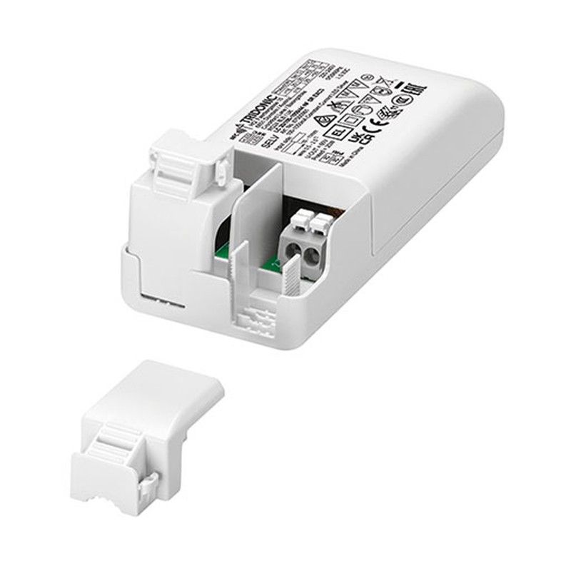 Plus d'informationsDriver LED indépendant à courant constant ¦ Courant de sortie réglable entre 100 et 1 050 mA avec NFC ¦ Puissance de sortie max. 20 W ¦ Rendement jusqu'à 81 % ¦ Durée de vie nominale jusqu'à 100 000 h ¦ Garantie 5 ans (conditions sur www.tridonic.com) ¦ Boîtier : polycarbonate, blanc ¦ Indice de protection IP20 ¦ Montage sans outil du serre-câble ¦ Communication en champ proche (NFC) ¦ Courant de sortie réglable par pas de 1 mA (NFC) ¦ Fonctions de protection (surchauffe, court-circuit, surcharge, marche à vide) ¦ Tension de protection contre les surtensions 1 kV (L – N) ¦ Convient aux systèmes d'éclairage de secours selon selon EN 50172 ¦ Pour sections de câble jusqu'à 2,5 mm² ¦ Configuration flexible via companionSUITE (NFC) ¦ Fenêtre de commande orientée application pour une compatibilité maximale ¦ Nouveau concept de décharge de traction – montage rapide et connexion pré-assemblée de la charge LED possible ¦ Pour applications dans les luminaires downlight et décoratifs